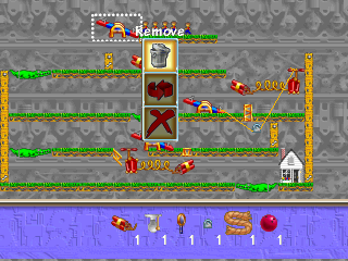 The first of a very small number of console ports, this particular version is less its own unique entry and more a further enhanced version of Even More Incredible Machine. 28 new puzzles have been added to TEMIM’s set, most of which are on the extra difficult side. Aside from obviously using a controller, however, it’s basically the same game. On that note, the controls do feel sluggish at times – the cursor can be a little slow to accelerate, which can lead to a somewhat uncomfortable ‘sticky’ feeling. That said, the button layout is fairly logical, so the slow cursor is something that can be acclimated with, given time.