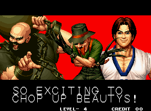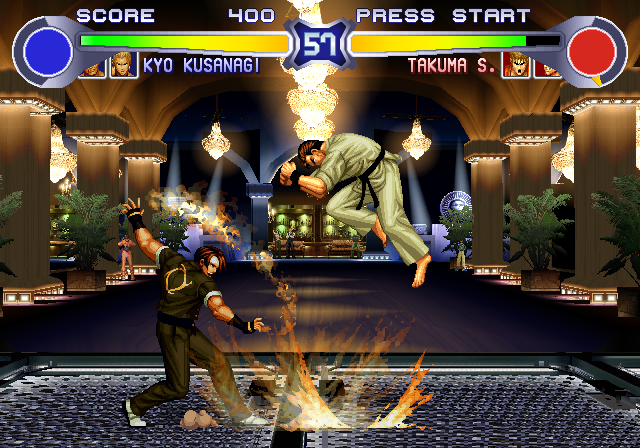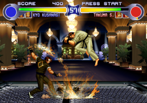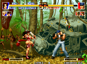 The first game in the series, The King of Fighters ’94 has a lot of innovative ideas, but it’s been completely surpassed in every aspect by its successors. Most annoyingly, the game forces the player into choosing set teams of three fighters instead of being able to choose any combination of the game’s twenty-four playable characters. This restriction was fortunately abandoned in all future games in the series, as the large variety of characters quickly became one of the draws of the game compared to its contemporaries. There’s also very little in the way of plot and cutscenes in King of Fighters ’94 compared to many other SNK fighting games, making the lack of customizable teams even more puzzling. Although most of the cast comes from the Fatal Fury and Art of Fighting series, as well as the characters brought from Ikari Warriors and Psycho Soldier, the protagonist, Kyo Kusanagi and his team, Benimaru and Goro, were made specifically for this game. Other new characters include recurring villain Rugal Bernstein and the members of the American Sports Team: football player Brian Battler, basketball player Lucky Glauber, and boxer/rapper Heavy D!. The latter was dropped for several years as they felt out of place and more appropriate for goofier fighting games.