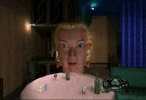 The controls are the same as before. Move in first person, click on things and use items to advance the story. Say “Yes” or “No”. There’s a great deal of back and forth. One significant difference is a lack of danger, or even a sense of danger. In the Sega CD game, you played an outsider. Here in the Saturn game, you are in your place of residence. It isn’t quite so unnerving when all you are doing is going from room to room talking with your neighbors. The stakes do get increasingly higher, but there isn’t much mystery stemming from the rooms of the mansion themselves. It is another way that the mood of the sequel fails to capture or elaborate upon what made its predecessor interesting.