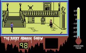 The Rocky Horror Show is one of the most amusingly insane musicals ever conceived (at least for the first ten or so times you watch it. Eventually, even it gets old). Astonishingly, whenever someone makes a video game out of the franchise, things somehow manage to make even less sense. Well, not initially. When the CRL Group first released their adaptation for the ZX Spectrum and Amstrad CPC, it was rather boring, so let’s focus entirely on the Commodore 64 version. Either Brad or Janet, depending on the player’s choice, sets out to save their petrified fiancee before the mansion takes off into outer space. Whoever is helplessly confused right now: reading this review without having watched the show or the movie is just as enlightening as playing the game without having watched the show or the movie.