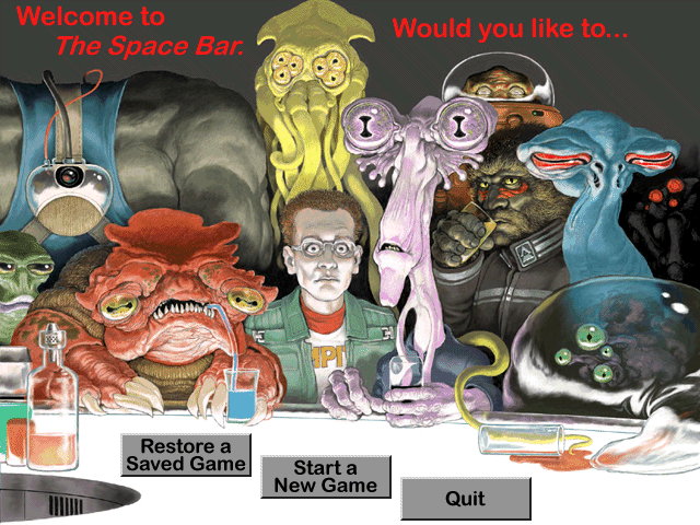 Designed and written by veteran text adventure game creator Steve Meretzky (Planetfall, The Hitchhiker’s Guide to the Galaxy), The Space Bar is a large, well-crafted adventure game with creative puzzles, an excellent story and a large cast of interesting characters. You play as Alias Node, an investigator working for an alien corporation. He is the only human on the planet, which is teeming with a wide variety of sentient life from across the universe. Node gets caught up in a mystery involving murder and espionage. While searching for answers in a seedy bar, the Thirsty Tentacle, his partner is kidnapped. Somewhere in the bar is the being he is looking for, but there’s only one problem: the alien is a shapeshifter, and could be posing as anyone. Fortunately, Alias possesses an empathic ability that allows him to relive the experiences of others, which aids him in finding the culprit.