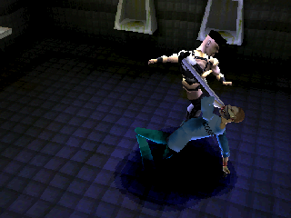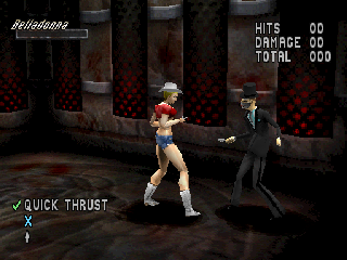 Every character has five different finishing moves, with the exception of Violet, who only gets four. The first few are your standard fatality moves, where your character kills off the opponent in some kind of convoluted manner. Some of these can get pretty brutal, even with the rather blocky graphics of the PlayStation. Highlights include convincing your opponent to kill themselves with your own cattle prod, tearing their head off to drink the blood out of it, stomping your opponent through the head so hard it explodes, or looking like you’re about to perform oral sex on your opponent, but it turns out you’re only tickling their feet. Yes, that last one is real, and of course, it’s Belladonna’s. There’s also Thrill KillCombos, which let your character perform a long series of hits on the opponent, leading to full-body explosion. Or, if you’re feeling in more of a Friendship sort of mood, everybody’s last finisher involves your character showing off their dance moves. Belladonna may not be the first nor the last dominatrix to show up in a fighting game, but she is probably the first one you can make perform the Macarena.