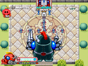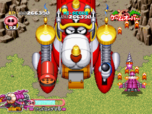 Bokan to Ippatsu received a Saturn port which adds a new theme song, proper voices for the hero boss characters, and an extra stage. The PlayStation also received the sequel Bokan desuyo, which features new stages but plays almost identically outside of some tweaks, like stronger bombs if you load and carry them for a long period of time. This game was also released in Italy as Time Bokan: Yattaman.