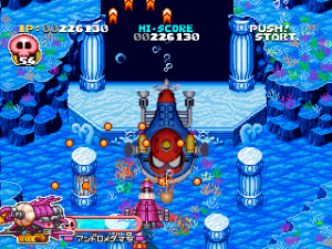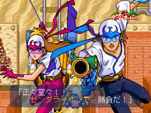 Time Bokan is an anime originating in 1975, consisting of several subseries that mostly involve silly superhero and mecha fighting antics similar to American Saturday morning cartoons. However, within these series, the villains were often more popular than the heroes, including the Doronbo Gang, originating from the show Yatterman. Consisting of sexy leader Doronjo, gawky Boyacky, and stout Tonzura, this trio of goofballs also inspired similar characters in later anime series, most famously Team Rocket in Pokémon. They’re also the stars of two vertical shoot-em-ups released in the 2D, as you pilot an assortment of vehicles and fight do-gooders from across the Time Bokan universe. Both games were developed by Eleven, formed by former Kaneko staff, who specialized in shoot-em-ups like Super Star Soldier.