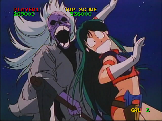 666 A.D. – A giant ghoul in a spooky graveyard rises from the ground to scythe the Time Gal good. It takes 3 laser blasts to finish him off. A rather short stage, as well. The international Sega CD versions change this time period to 600 A.D.