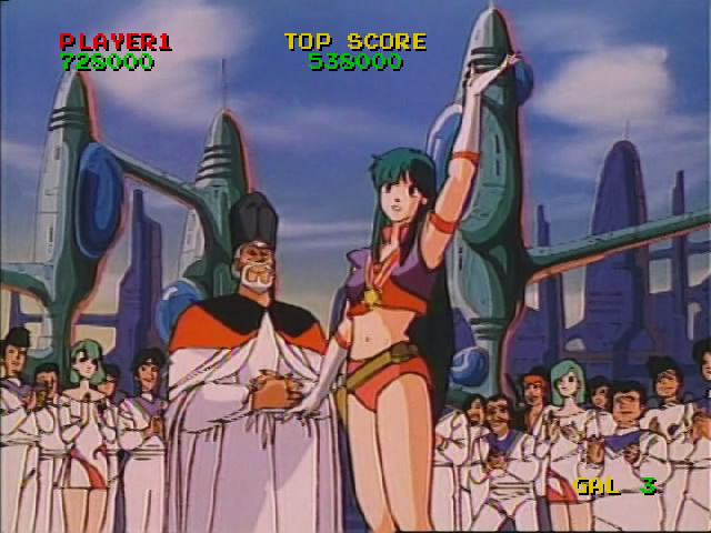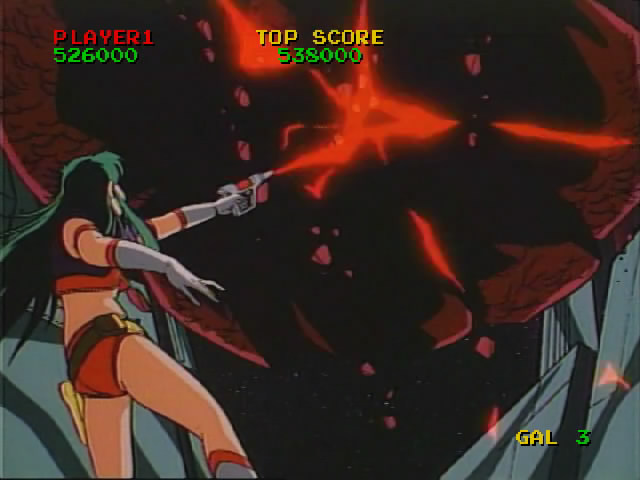 It is a little unfortunate that the Time Gal Reika never broke away from the FMV ghetto like Dirk or Dexter did, generally left as a footnote as one of the first high-profile human playable female protagonists in video games. Her chrono-leaping and lasergun-toting antics could’ve crossed over as a run-‘n-gun action side-scroller relatively easy and might’ve kept her from being forgotten so easily. But who knows, maybe Taito might give her another starring role or another cameo in the future, or at least the original game could be re-released for the latest digital formats. For now, she exists as a relic of gaming’s past, when newfangled gimmicks could draw players in through simple video playback, and yet ironically ahead of her time.