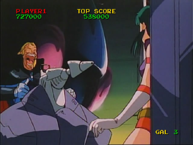 The visuals and animation of the game are well done, being on par with a high-quality anime OVA at the time. It obviously doesn’t match the fluidity of Don Bluth’s works, but suits well to its style, with no outright off-model errors. Unfortunately, the lack of music through most of the game beyond the attraction demo jingle leaves the audio rather vacant at times, aside from whatever quip Reika fills in with. Unlike Don Bluth’s FMV games, no DVD or Blu-Ray remaster seems to exist for this or any other Taito interactive movie title, so laserdisc-quality is the best you can get.