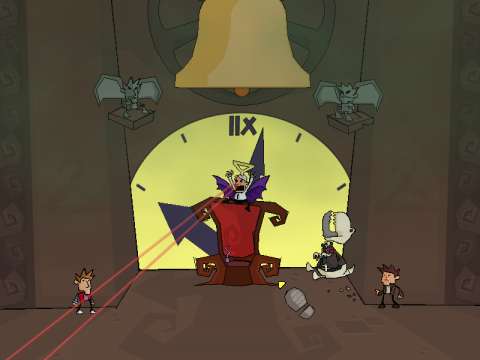 The cleverest bit is when the duo discovers an unfinished text adventure, The Space Adventures of W. T. Pal, A Human. Their shenanigans puncture an even deeper hole in the time-space fabric, eventually plunging them right into a visual representation of this game-within-a-game. The hero is an intrepid Victorian-era explorer named William, who is ultimately helpless without Ben and Dan’s intervention, and can only be controlled by zapping back to the “real world” and taking on his persona through the text adventure on the computer. It’s all very pleasantly meta. There’s also another retro point-and-click adventure game where you control Hitler, one of the many puzzles to conquer the innards of Big Ben. Of particular note is the “Invade” verb, distressingly amusing when used on the toilet. (Something about having already invaded “poo-land”. Awful, yes.)
