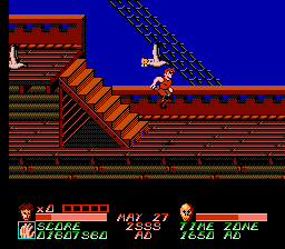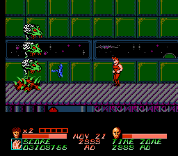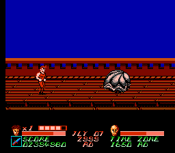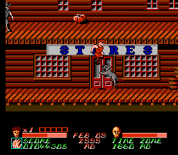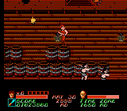 It’s also important to note that there’s an overall time limit to beat Time Lord. It operates under the “San Dimas Time” trope in that time is flowing in the future even though you’re in the past, at the rate of one day per six seconds. In practice, this means you have a little over half an hour to beat the whole game. It’s no joke that you’ll probably spend about two or three months of this time just fighting this damn bandito. And it’s not even particularly difficult, technically it’s just really drawn out and tedious, and it’s easy to make a few mistakes when moving back and forth. Also, while there are occasionally extra lives and health restoratives found in the levels, there are no continues, so it’s back to square one if you exhaust your supply.