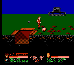 Time travel is an alluring concept for an action game, since it promises huge array of interesting places to visit, weapons to use, and bad guys to kill. And that’s exactly the appeal of Time Lord (no relation to Doctor Who), where you control a soldier in the future year 2999 sent back through time in order combat an alien invasion. These interstellar baddies figured the easiest way to conquer Earth was go back into time and muck it up, so to fix it, you need to find five time orbs in each stage, kill some bosses, then travel to the next era. You’ll fight knights with swords in medieval England, duel with pistols and rifles in the American Wild West, toss throwing knives at pirates on a pirate ship, and lob grenades at baddies in World War II. A good premise, along with some nice box cover art, largely wrecked by some absolutely hateful game design.