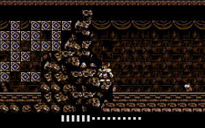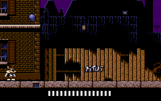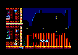 The Amstrad CPC version is cut down and revisited, in that it has only seven shorter stages, in a different order (i.e. the pyramid is sandwiched between two French areas), and one of them is wholly original, being some sort of flower garden; it also ends immediately after Titus finds Foxy in Marrakech, without the return trip to Paris. Amusingly, the artists hid some environmental slogans written with the game’s tiles: “BAN BLOOD SPORTS” and “STOP THE FUR TRADE”. In general the graphics are rendered well for the system, and are also more colorful than the dark muted tones of the original. But the slow scrolling, sluggish sprite movement and flickering make things once again harder, especially when you have to move and stack objects.