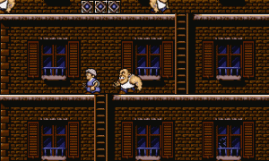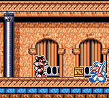 The port consists of only six two-part short stages (the GBC version adds an extra one at the beginning), each one ending with an illustration of Titus and a bonus stage where you have 100 seconds to pick up as many energy icons as possible and reach the exit. It’s quite simplified: there are no passwords, the stages are smaller, much more linear, made with bits and parts from the originals; there are just a few enemy types, no bosses and you can’t stack stuff any longer; a welcome addition though is that crates no longer disappear when you throw them at an enemy. On the other hand, collision detection is flawed, flicker abounds and hidden platforms/walls seem to appear and disappear at random. There’s an option to toggle the difficulty between easy and hard, but it seems to only affect the sprites’ speed. Finally, by linking two consoles with the link cable, one can have a simultaneous 2-players mode, with player 2 taking the part of Titus’ identical cousin Zorro (fittingly meaning “fox” in Spanish). The “best” thing, however, is that the game abruptly ends in the same apartment complex where we meet La Zoubida/Foxy for the first time, i.e. stage 7 of the original game, or halfway through it, so… what was even the point of going all the way to Marrakech and return?!?