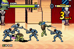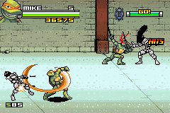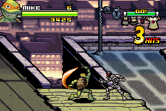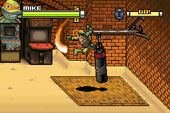 The fighting system is reminiscent of what is found in Turtles in Time, with one button acting as strike and the other as jump. Pushing the strike button in rapid succession leads to a combination of strikes, and there enemies can also be thrown as in the previous arcade games. However there is much more to the fighting system of TMNT GBA.