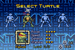 There is no platforming action to be found whatsoever in TMNT GBA, rather here the idea is to bring back the barrage of enemies in a simplistic yet addictive beat-em-up worthy of the TMNT name and association. Over the course of seven levels, the Ninja Turtles must battle not only the low life thugs of downtown Manhattan, but also the Foot and mythical creatures from thousands of generations ago. In addition to the general cast of the movie, TMNT GBA also features an larger supporting cast of characters from the 2k3 series, despite the movie itself not being set in that same universe. The game usually gives a free choice of what turtle to play as and who is their stage partner, though certain stages has the character pre-selected due to plot points.