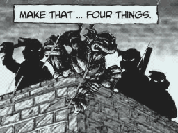 The stages are seperated into three categories - Standard, Ambush, and Boss, with Ambush being a constant rush of enemies from all angles. After four levels a story sequence plays in the style of comic books, and scenery changes as the Ninja Turtles traverse the Big Apple.
