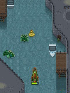 These two types of stages take turns between levels, but neither works very well, mostly due to absolutely disastrous controls - a common fault of most Symbian-based cell phone games. The whole game runs at grandpa speed, and there is such a huge delay between the buttons being pressed and the actual action taking place that you might as well just imagine the game in your head and have the game be responsive there, because that is the only way you're gonna have any fun with Power of 4. There are so many occasions where the turtle will just simply not respond or do something entirely different, either due to the game being poorly coded or because your fingers are too fat to dial the phone. Jumps can only be performed straight up, and while you can walk while in a crouch position, the turtle moves even slower then. The worst part is when the mission turns into an escort mission, where April will just simply walk into the line of fire while you frantically try to dial Satan's number to ask to be spared from playing this game further.