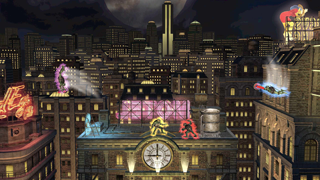 Battle for the City is a Ninja Turtles controller which comes with an original sidescroller starring the four green machines. Over the course of four stages throughout NYC, the turtles needs to track down a number of keys before continuing on to the next stage. The ultimate task is to rescue Splinter from a mysterious perpetrator. Each stage is filled with bad guys, and the turtles can be hotswapped at whatever point. If a turtle gets knocked out, he is captured, though he can be rescued by picking up turtle-shaped tokens. At the end of each stage, there's a boss character.