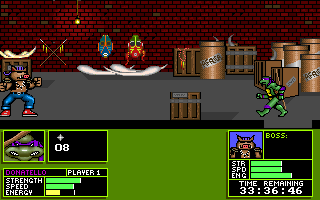 At the time in 1991, home computers were not yet a fully realized gaming platform, and far from as widespread of a household item as it is today, so the audience was presumed to be an older and more technically savvy than that found on the home console systems. This lead to Manhattan Missions being a bit deeper and darker than the other games before it, and definitely the most interesting purely design wise. The tone of the game both graphically and atmospherically is pretty stellar for a 1991 game, with lush graphics and cool night time scenery, and the turtles have a much more sinister and lethal feel to them, making use of their weapons more efficiently and maybe most important, diversely. The non linear storyline and stage setup is also a very welcome change of pace, but most of the game's unique features feel a bit underutilized. The timing of the combat system is a little bit uneven due to varying speeds between enemy animations and the turtles themselves, and mastering the defense system is a chore due to this. The combat also suffers from some of the same issues, and while in certain boss battles strategy and well placed attacks help, for the most part it just turns into button mashing hoping for the best. Most glaring however is the whole time aspect, which is not stressed strongly enough in the story, and also does not feel very intimidating in game, only becoming a bother during rest then quickly forgotten. Worse yet is the fact that for a game that gives the player 48 hours, it can still be beaten in about 30 minutes, even during the very first playthrough if one just decides to avoid combat altogether and head for the boss. Due to the short length, the idea of powering up each individual turtle becomes sort of obsolete.