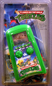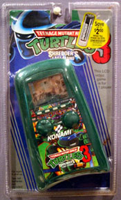 Before the Game Boy came on the market in 1989, the only way to enjoy a handheld video game was in the form of an LCD gaming unit, popularized by Nintendo themselves with the Game & Watch series throughout the early 1980's. These games were done by having a custom display per game and using LCD lighting to light up the different shapes to allow for detailed graphics, though at the expense of deeper interactivity. During 1989, Konami began producing their own line of LCD game systems based on their most popular titles, ranging from Gradius to Contra and replicating the familiar premise of their console counterpart into a smaller yet recognizable portable product. The most popular of Konami's LCD handhelds was arguably the TMNT line, with the very first being released only a few months shy of the American release of the Game Boy in 1989.