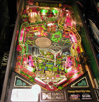 At the height of their popularity, the Ninja Turtles also were the subject of a popular pinball machine much like all other successful blockbuster movies and franchises during the early to mid 90's. Manufactured by Data East, it was designed by Joe Kaminkow and Ed Cebula, both of whom worked on several other popular pinball machines such as Star Wars, Robocop, Last Action Hero and Back to the Future.