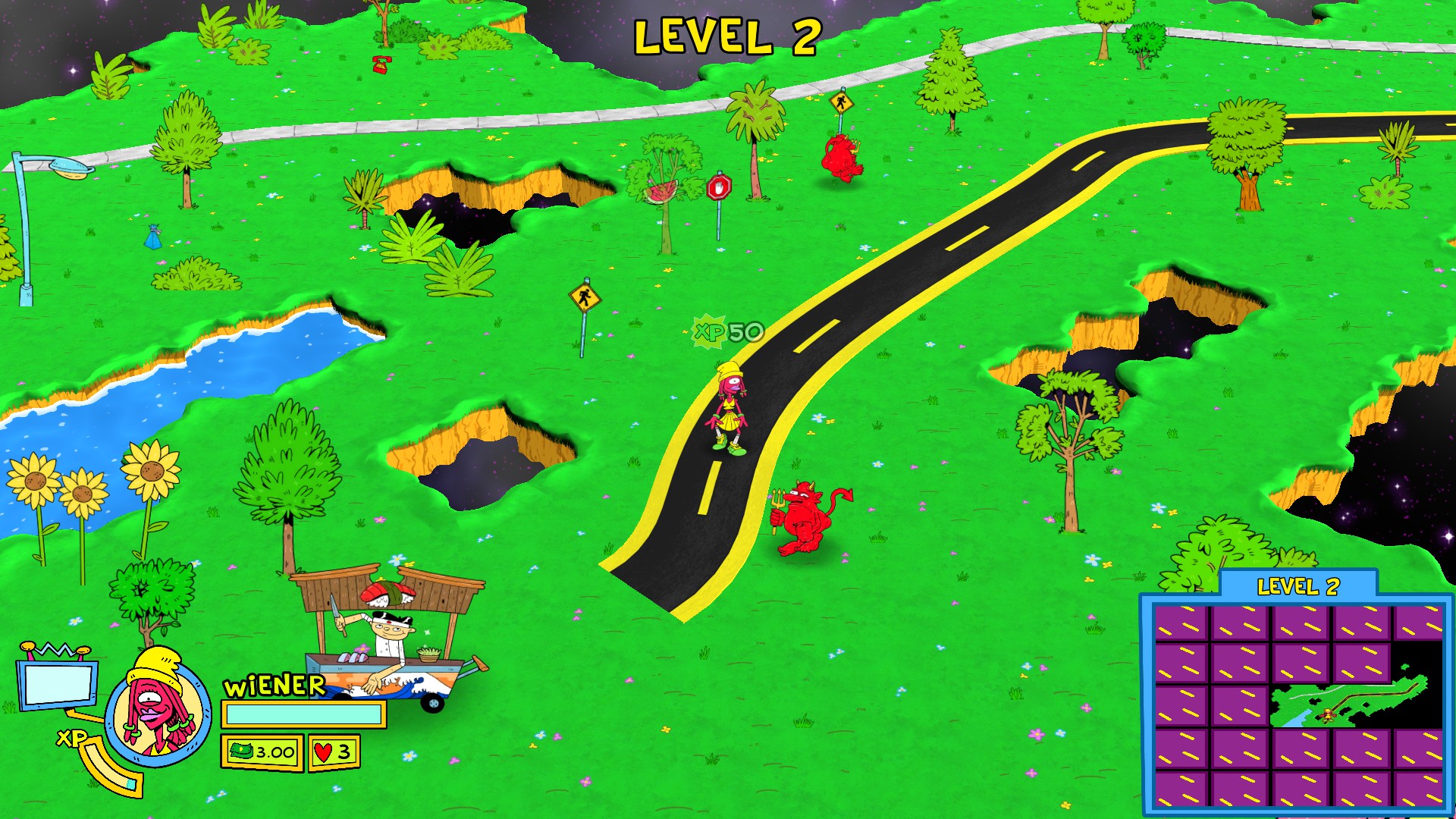 There’s far more things to interact with in general hidden all over the map in general. Coin meters and buttons can be interacted with, spawning in things that may or may not be helpful. Funkotron natives occasionally make an appearance, offering the chance to play a simple rhythm game for a chance at prizes. Hidden doors will occasionally whisk you to the trippy Hyperfunk Zone, (returning from Panic on Funkotron) an auto-scrolling minigame where success can earn you hefty cash and experience. There’s generally always something to mess with on all corners of the map, which means you’re always more engaged.
