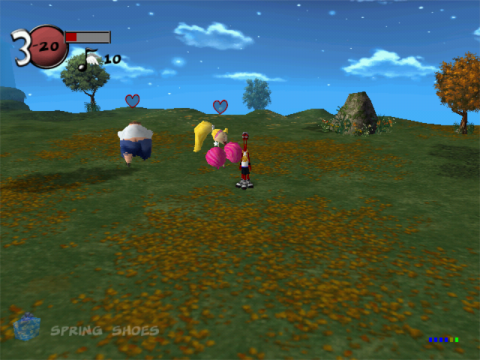 Most of the wacky humor is still there with all the weird Earthlings you’ll fight off, with cheerleaders and bad country singers joining the ranks of the enemies from the original game. Since the game’s moved up to a T rating, however, the humor’s been made a little edgier. Probably nothing that you wouldn’t hear on The Simpsons, but when you compare what the original games were like, it is a bit raunchier. There’s actually separate “Naughty” and “Nice” modes for the dialogue, with the former having a lot more off-color comments from the characters and the humans. Yes, many jokes are made about Toejam’s third leg. While it’s nothing particularly shocking, it doesn’t really fit between all the evil country singers and other cartoon wackiness the game typically uses.
