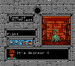 Although the setting is interesting, and there certainly aren’t very many adventure games on the NES, the interface feels too cluttered, with far too many actions and way too many items. The game world isn’t particularly big, but you have access to nearly all of it at once, so it’s confusing to figure out what to do and where to go. The puzzles are pretty boring too, rarely moving beyond combining objects and sticking them in various places. You can’t really tell what directions you’re allowed to move in, so it’s a matter of trial and error until you find the right arrow. You can also switch between the characters, as each of them have different abilities. Every once in awhile, you’ll come across a monster, which naturally needs to be killed. Other than a few cases when you need to use an item, most of these are beaten just by selecting the Fight command over and over. The only determining factor to your victory is your experience level, which is quietly raised by solving puzzles or looking at certain items. If you die in a fight, it’s the game’s subtle way of saying that you missed something.