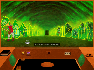 The gateways between the realms are known as phenocrysts. While many of the puzzles are typical Sierra inventory types, these gateway areas contain logic conundrums, closer to The 7th Guest. However, they are quite a bit simpler. The command bar also comes with a built-in hint function. You can set how often you’d like hints to be available, or just turn them always on, but using them will also deduct a few points from your score. Sometimes they’ll outright tell you the solution, but for the phenocryst puzzles, they usually just give vague suggestions.