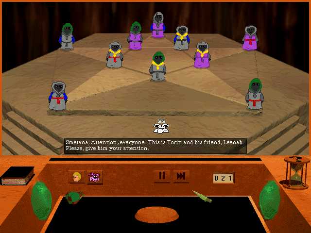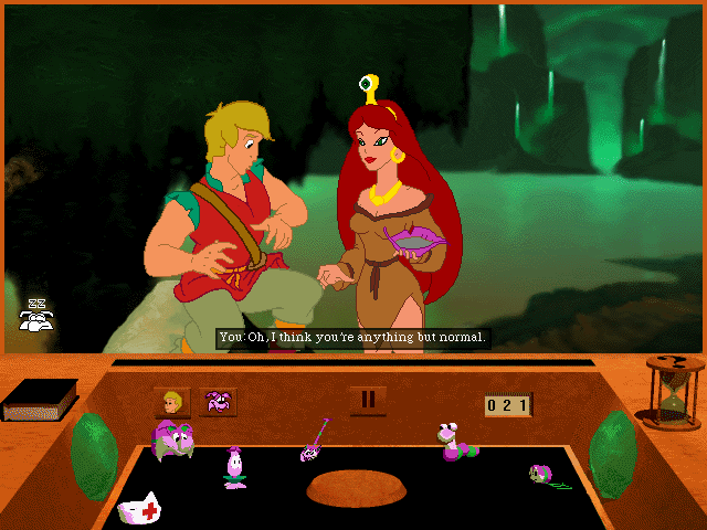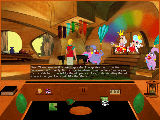 While there’s a lot to like about Torin’s Passage, it feels like something’s missing. Not in the same way as King’s Quest VII, which was clearly unfinished, but Torin’s Passage was obviously meant to be the first part in a larger series that never transpired. There’s not much of a plot beyond “Torin goes on adventure, discovers secret heritage.” A love interest, the strikingly beautiful Princess Leenah, is introduced halfway through the game, and other than some not-so-subtle moments of lustful tension, there’s absolutely nothing done with the couple. She doesn’t even appear in the ending. As a prelude to the greater adventures of Torin, it would have been excellent. As a standalone title, it’s still quite good, but it’s not quite fulfilling either.