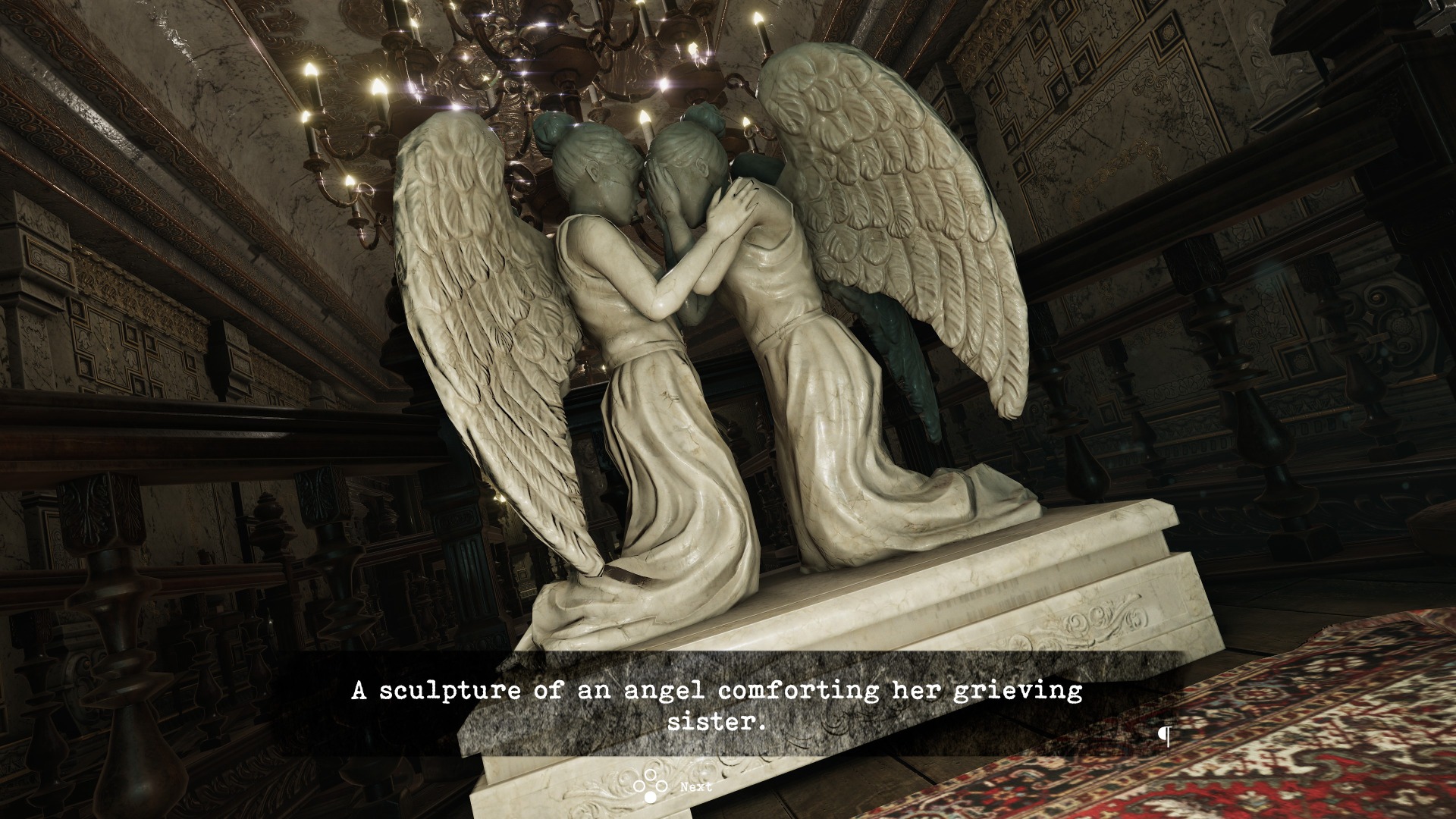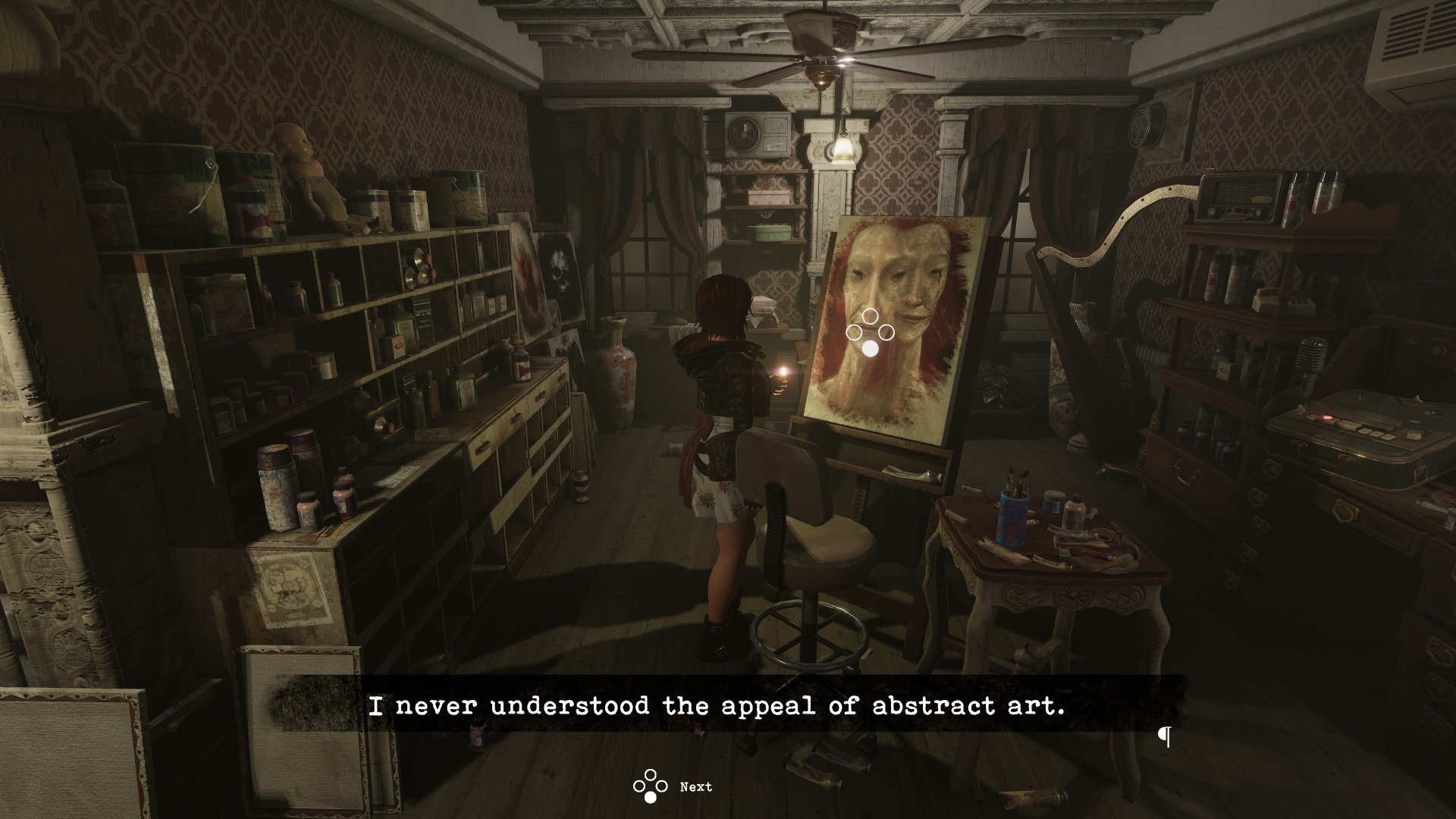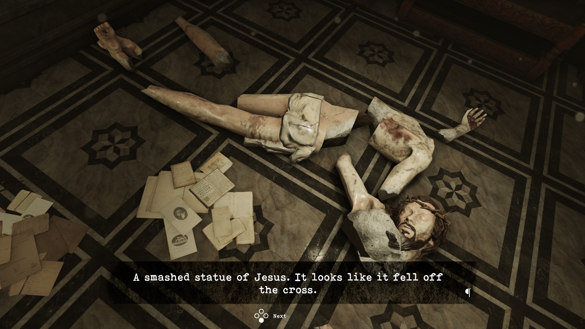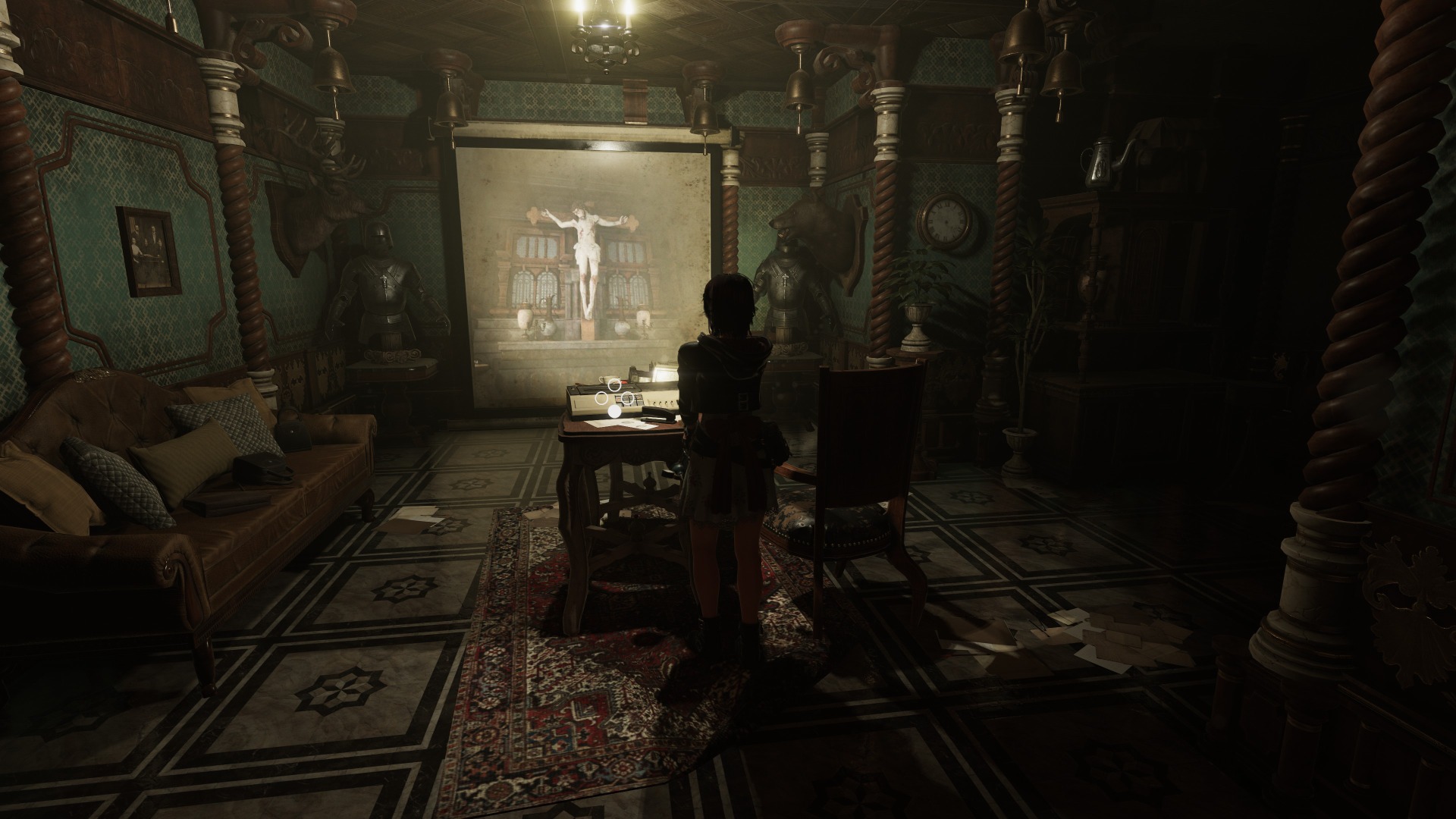 There’s also a great deal of religious imagery, including angel statues, historical Christian paintings, ornate crosses both rightside up and upside down, and a smashed statue of Jesus. Sometimes the two are combined, such as when a stethoscope must be used on a statue to listen to its heartbeat as a puzzle solution.