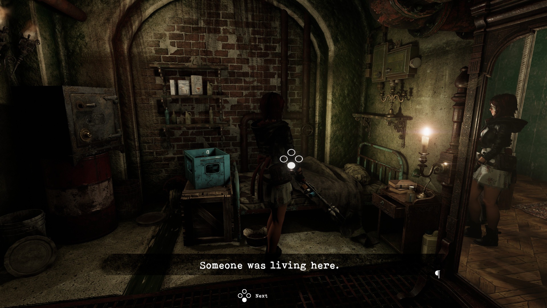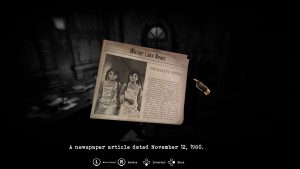 Another issue is that when Caroline learns certain things that should change her thoughts on some subjects, re-examining the things she’s now learned about will simply cause her to repeat her previous thoughts. This is in contrast to games like Silent Hill 3, which frequently changed Heather’s very opinionated thoughts on objects based on what she’s learned about them and even how many times she examined them.