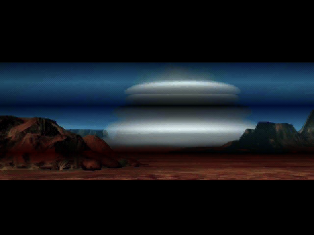 Both games start with a bang - a huge explosion in the desert. Whereas the original just had a nondescript detonation in the middle of nowhere, the remake actually shows a nuclear explosives test site, complete with a fake village that is about to be torn down by the impact. In both cases the explosion unearths a mysterious creature, although it's still locked in crystal in the old game, but running free in Anniversary. |