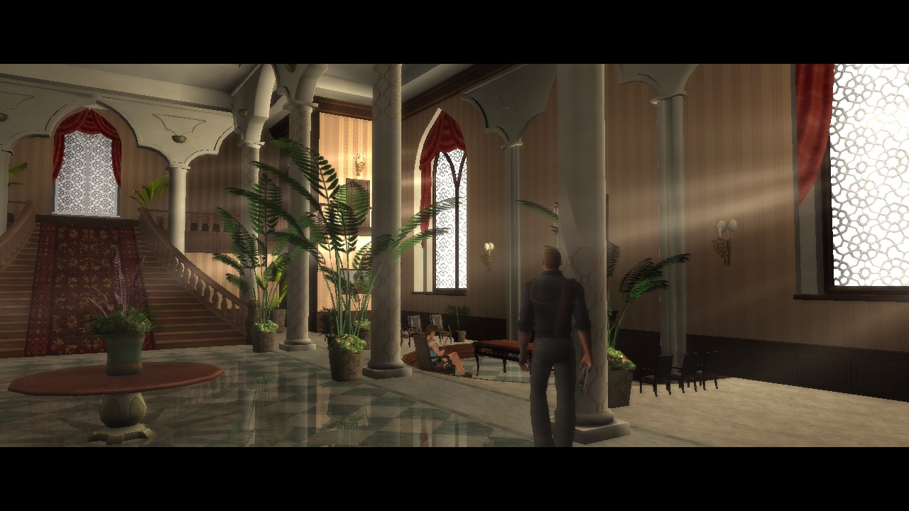 After the short teaser-style introduction (the mansion is always optional), a proper narrative intro video kicks off the actual adventure. By now another major difference becomes evident: In 1996, Core design delivered all cutscenes as FMV sequences, complete with crappy scanlines in the PC version (which is why the thumbnails are looking so dark), which the remake replaces with in-engine cutscenes. Natla's henchman Larsson approaches Lara in a grander hotel lobby, and while the dialog is fairly similar, Lara now actually recognizes Larsson, and already doesn't like him. The magazine he hold in front of her is now named Tomb Raider instead of the more generic but less fourth-wall breaking Adventurer!, and the cover got a funny change in tone. Natla's silly (but hardly recognizable) gesture where she left dollar notes floating in the background is gone, and she's shown in closeup on the laptop screen. The plot also gets more involved than just "fetch that random ancient artifact you know nothing about," as it is now the continuation of an expedition to which Lara had accompanied her late father, who had been retconned as a distinguished archaeologist since Tomb Raider Legend. |
