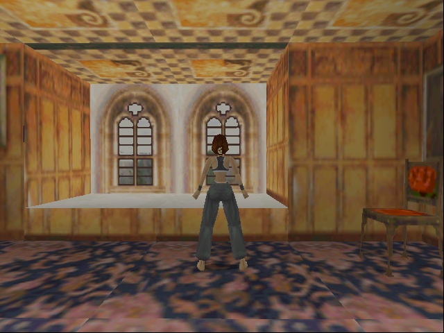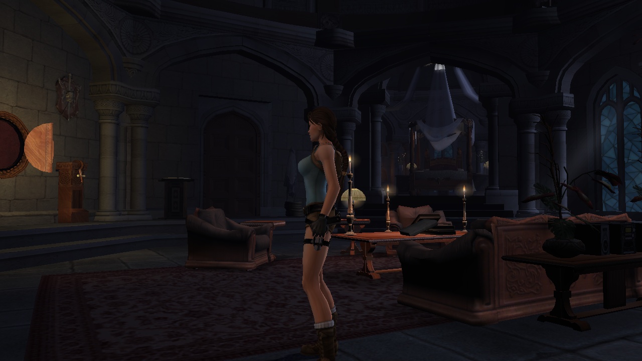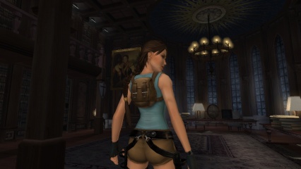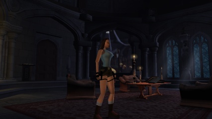 Aside from her outfit in the Croft Mansion training level, Lara used to wear the same clothes all throughout her first adventure. Every sequel added more costume changes for Ms. Croft, but in the classic games those were always tied to the mission at hand. Anniversary allows unlocking several costumes by finding relics, which can then be chosen freely by entering the mansion at any time. One of them is labeled "Classic" and uses a low-polygon model, although it is distinctly not faithful to the actual model used in the original game. The most noticeable differences are an extra polygon or two to round out Lara's once perfectly triangular chest a little, the hair and the lack of abdominal muscles showing through from underneath her top. |