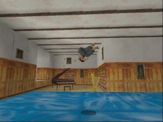 The pool is the only part in the house that's in better shape in the original, where it's actually usable. In the remake, it's just one huge, messy construction site for what admittedly would become a much larger pool area. |