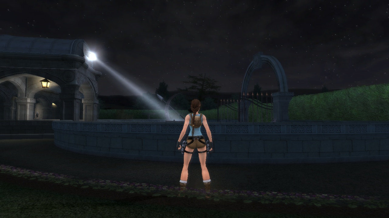 When Tomb Raider was first released, the outside of the mansion was only ever seen in a FMV zooming in on the bedroom window before taking control of Lara. Now there's a whole new section of the garden, complete with a hedge maze! It's also notable that the stage takes place at night, while the windows in the original showed some bright-ish foggy backdrop. |