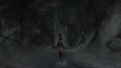 As soon as the doors are opened and the wolves attack, though, it's back to self-running cutscenes. Despite a much older-looking mountain guide, the sequence is reproduced almost shot by shot. Until the actual fight, where Lara used to just stand there and shoot at the incoming beasts, but she's changed to pull off all kinds of acrobatic stunts to outmaneuver them. |