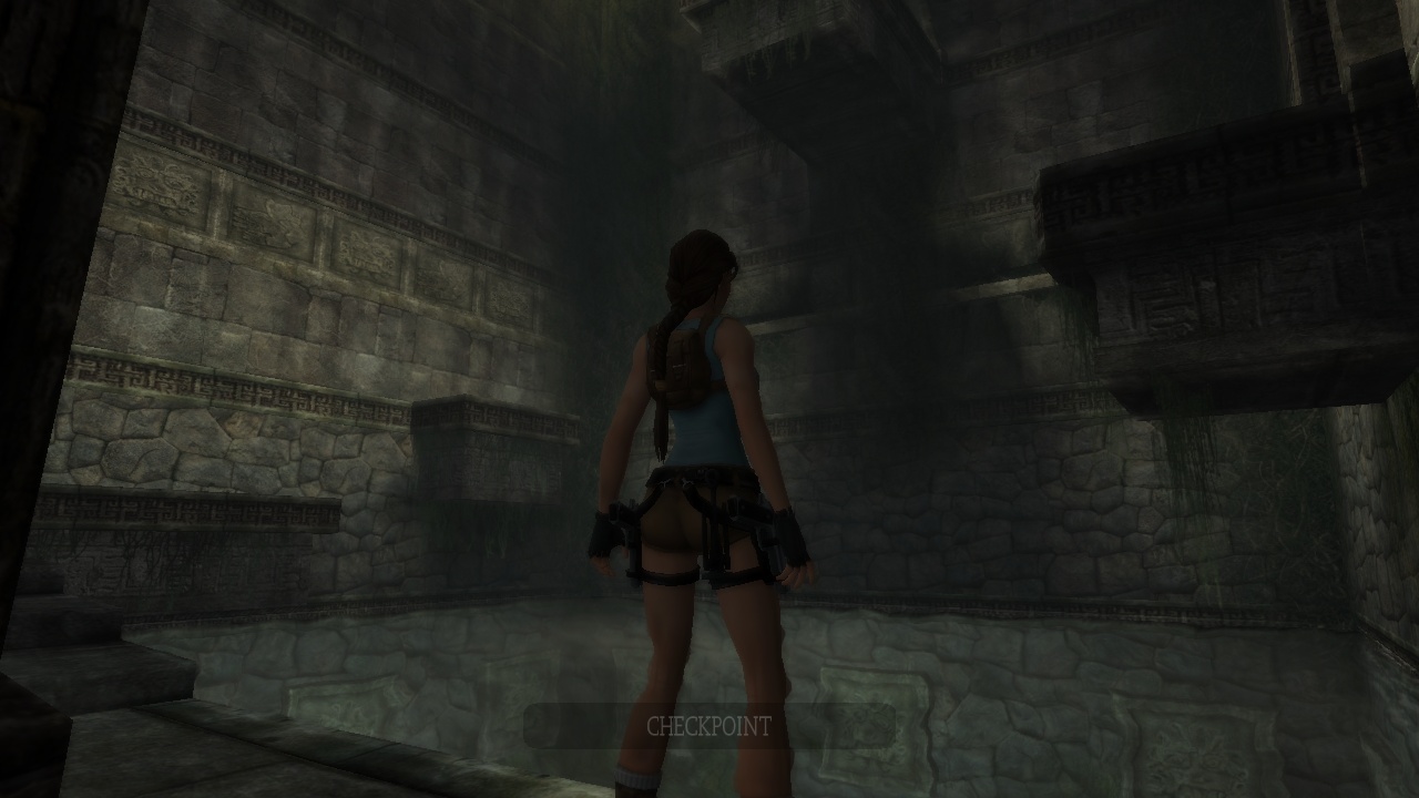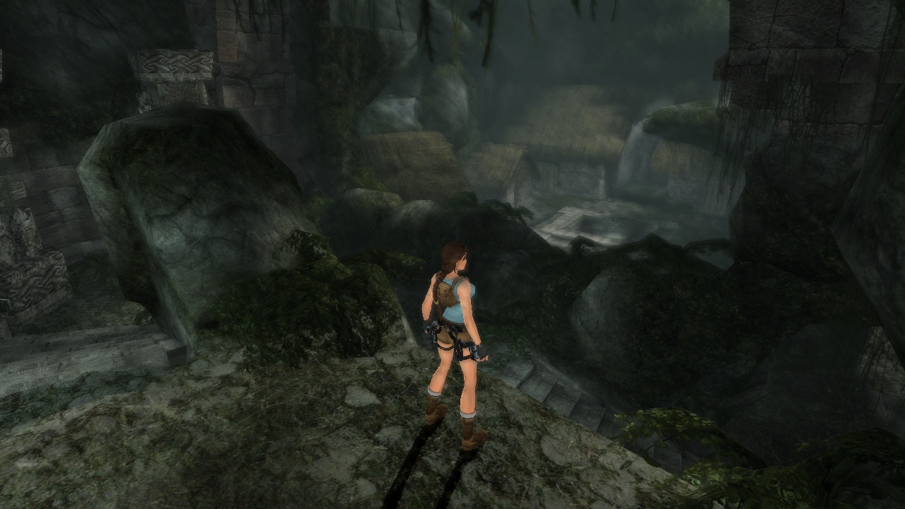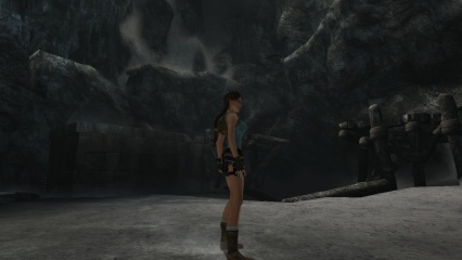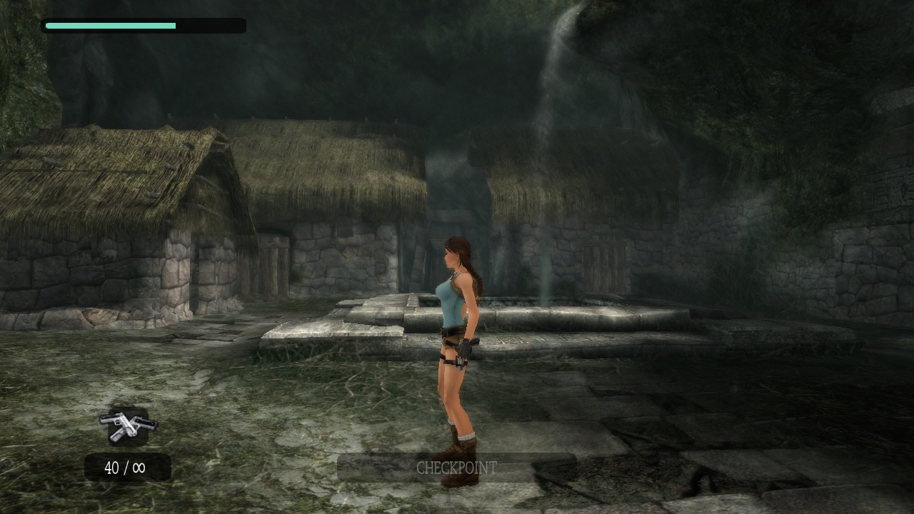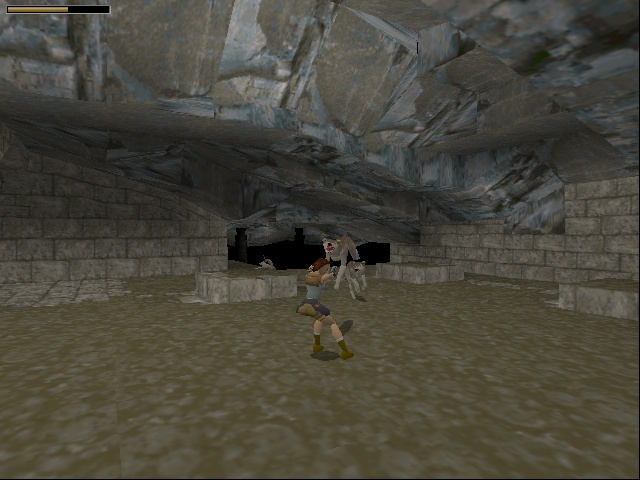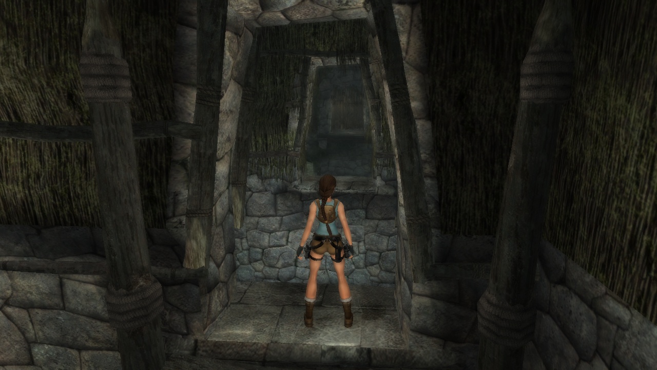 When playing Tomb Raider, it's easy to miss that the second level was supposed to be an underground town, with the rooms just built into the mountain structure. In the remake there are a few actual straw roof houses, although he interior remains mostly the same. Once Lara falls into the pond in the middle in Anniversary, she cannot just get back out, but is forced to swim to the other side. |