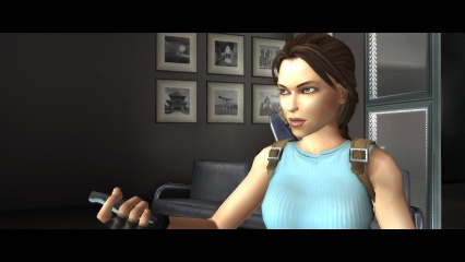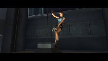 Lara's Totally Rad way to ride up an elevator is mostly intact, only instead of taking a blowtorch to the cables, she simply shoots them off with her handgun. In 1996's Tomb Raider she then proceeded to browse in an ancient book for some Atlantean lore, which has been replaced by her looking up files about the scion and her next adversary Pierre's task in a computer. Some things never change, though: Pierre is still a "Litterbug." |