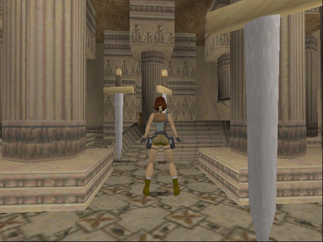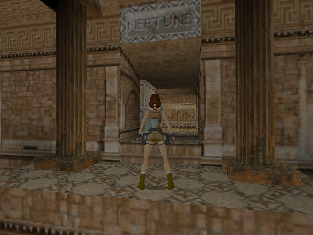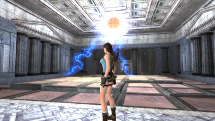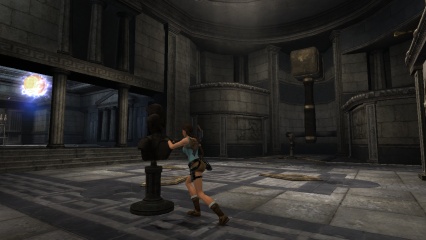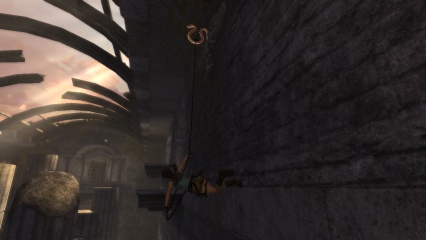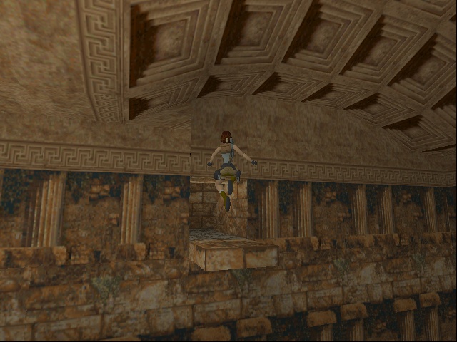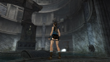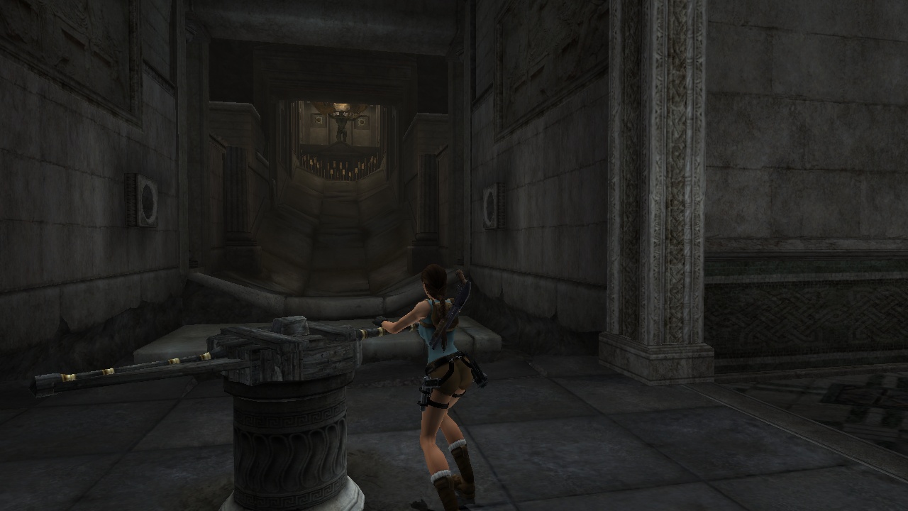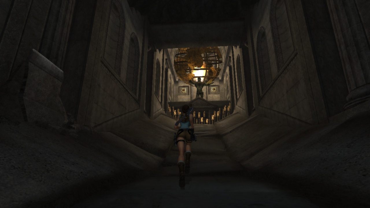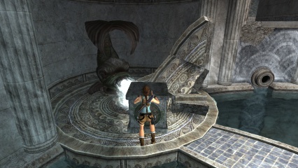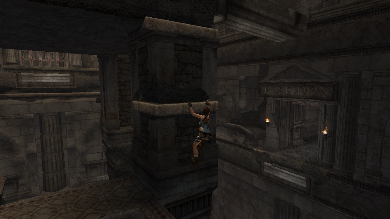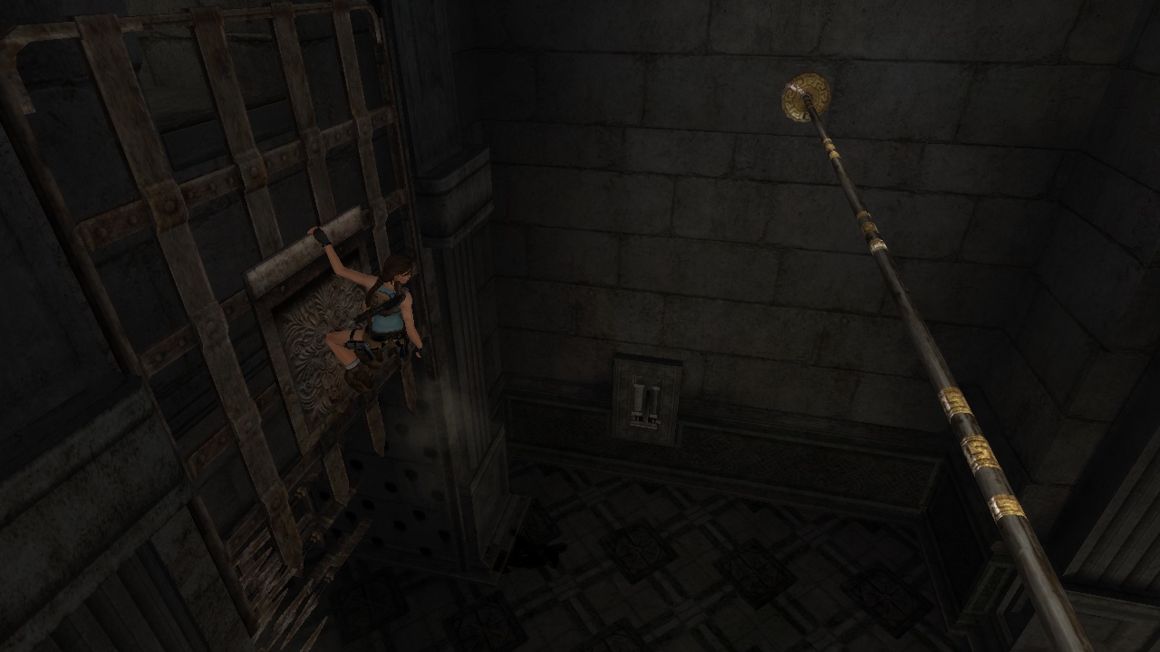 Lara then makes her way through a dried-up waterway - or does she simply run down a set of stairs? - to get into the huge vertical hall containing the four trial rooms of Thor, Atlas, Neptune, and Damocles. In the eleven years between, the floor has suffered a lot, and getting to the trials now involves a lot of climbing. Every room is also locked behind some clever double locks, which originally required switches getting pulled from both sides at once, so Lara has to find a new way of cheating the mechanism each time. |