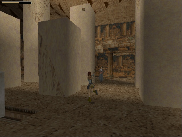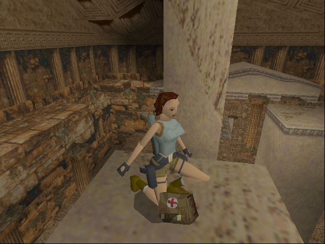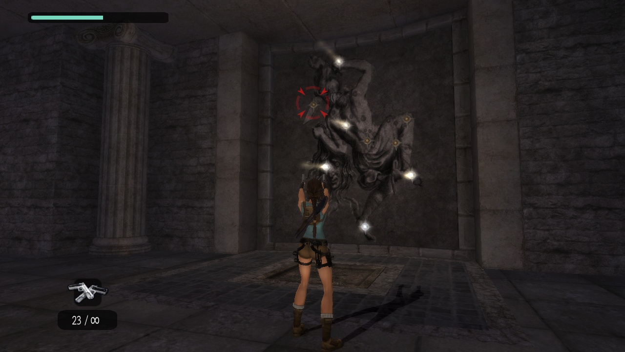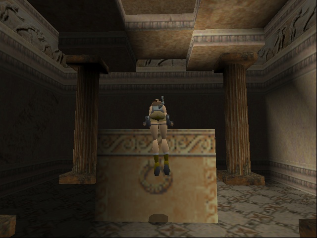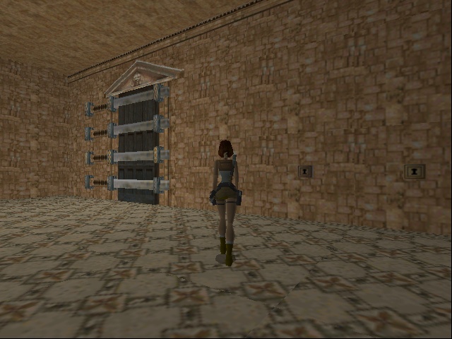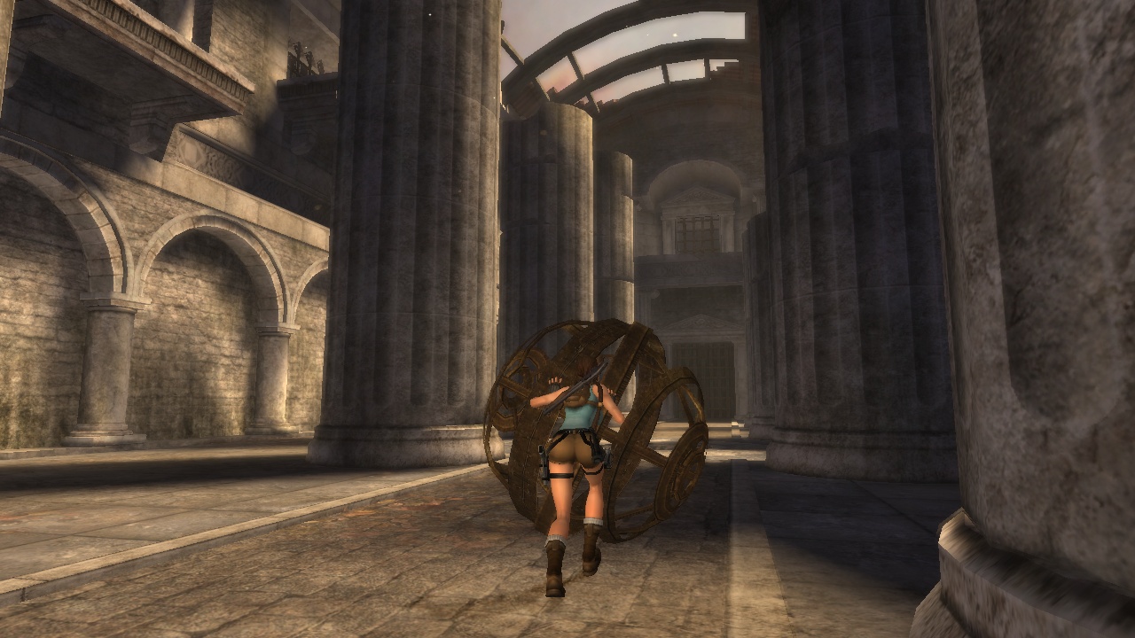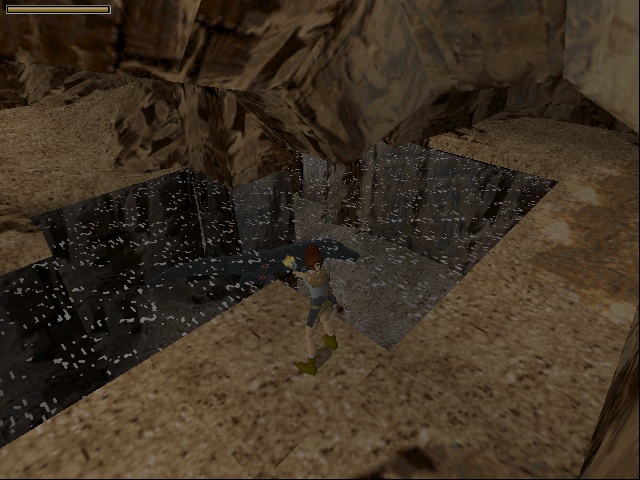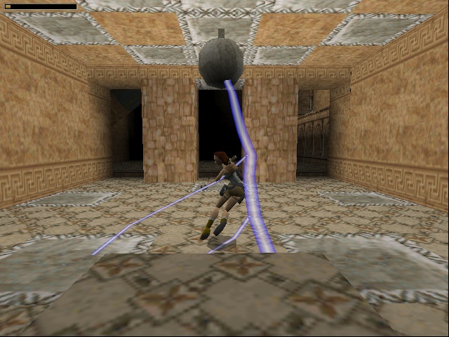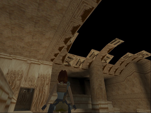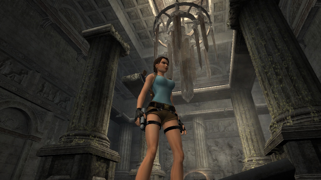 Lara then makes her way through a dried-up waterway - or does she simply run down a set of stairs? - to get into the huge vertical hall containing the four trial rooms of Thor, Atlas, Neptune, and Damocles. In the eleven years between, the floor has suffered a lot, and getting to the trials now involves a lot of climbing. Every room is also locked behind some clever double locks, which originally required switches getting pulled from both sides at once, so Lara has to find a new way of cheating the mechanism each time. |