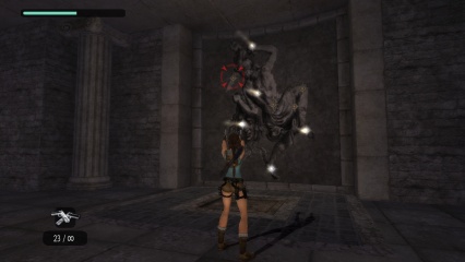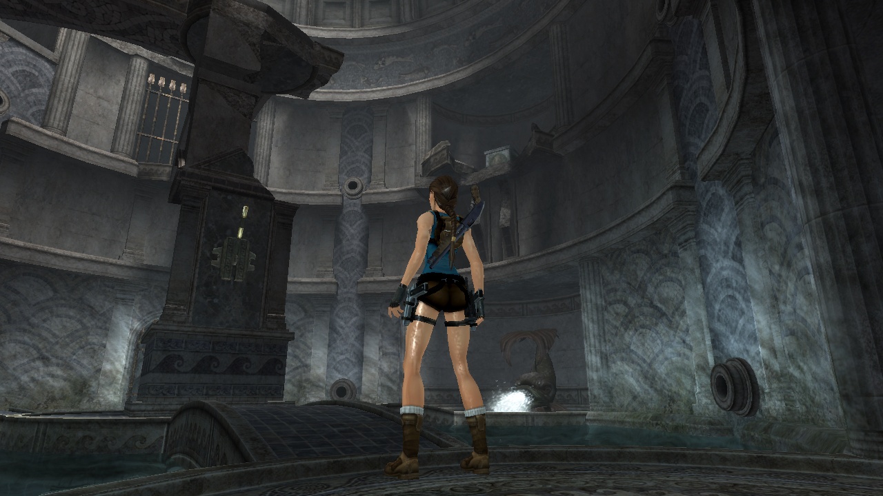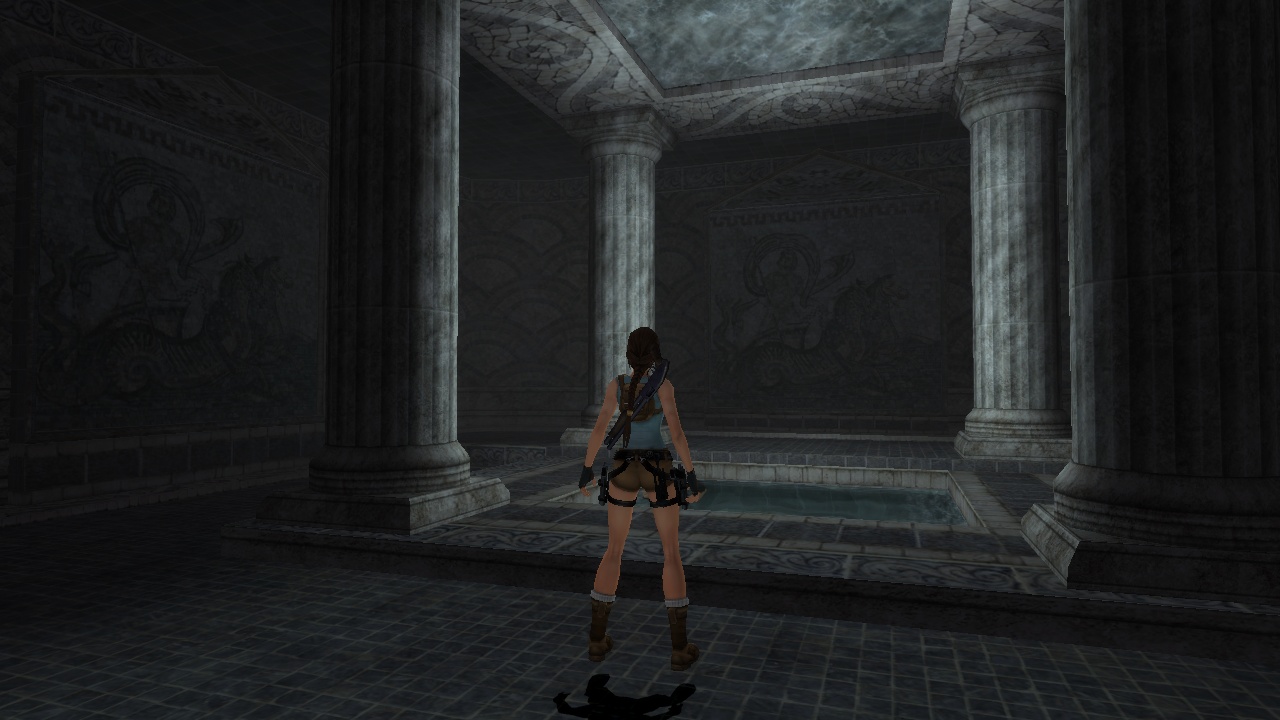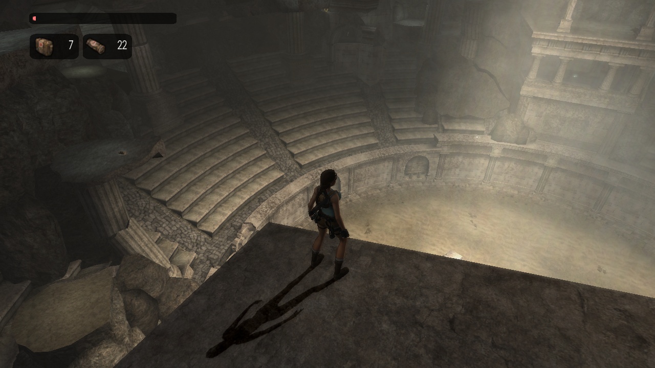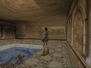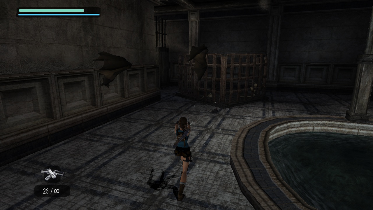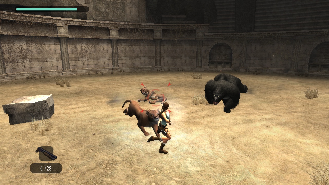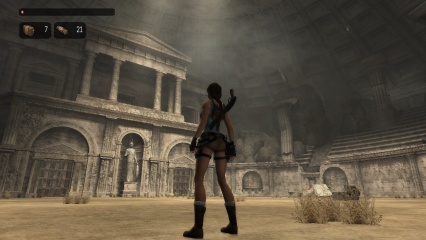 To get to the Coliseum, 1996 Lara has to dive through another pond of crocodiles, whereas 2007 Lara first encounters the rats, which not only appear much earlier than in the original game, but are also much smaller. Here Lara also never gets to see the Coliseum structure from the outside. |