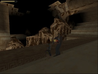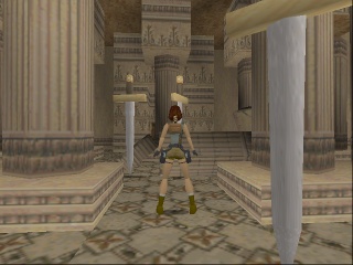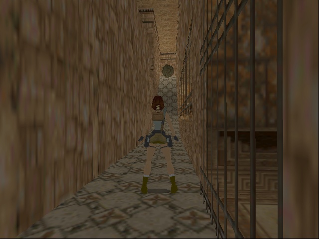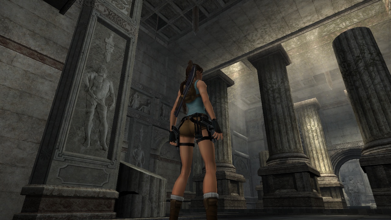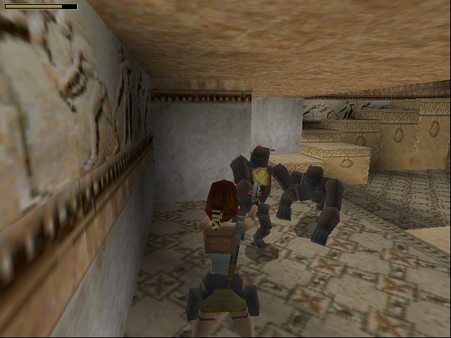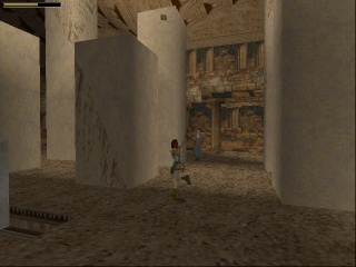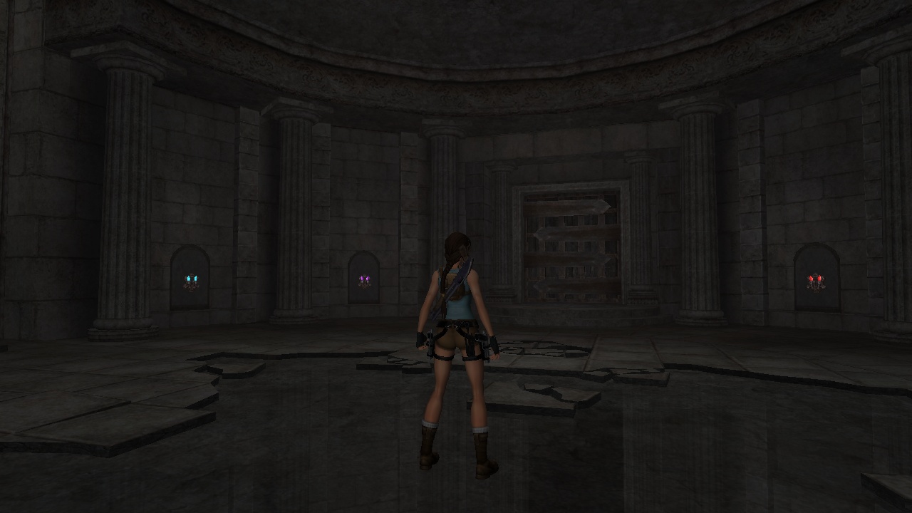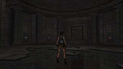 The inside originally never looked that much like a coliseum, especially because the engine didn't allow for rounded structures. While there always were a lot of lions and apes to fight in the pit, it used to be more of a hub for several puzzle rooms, but the remake makes the fight in the center a major event and quite difficult. |