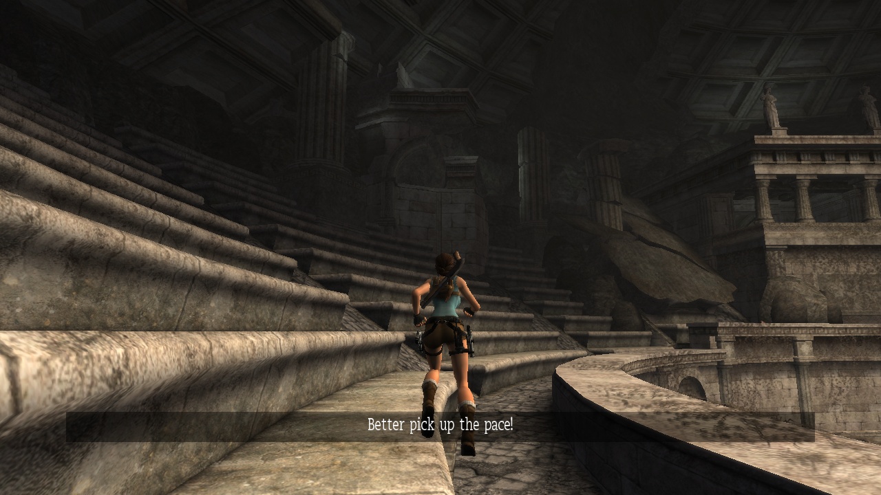 The VIP balcony with the beds and more attacking apes is gone, but this is made up by the opportunity to get all the way up the walls, making for a gorgeous view of the Coliseum. Pierre once again attacks and then flees in Tomb Raider, but is content with mocking Lara from off-screen in Anniversary. |