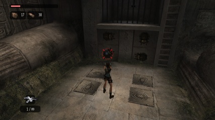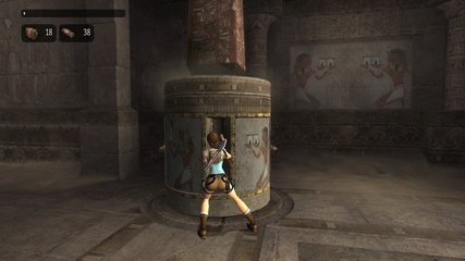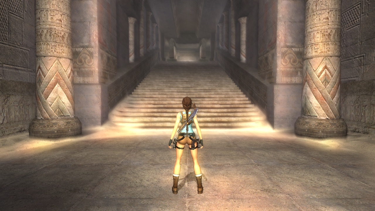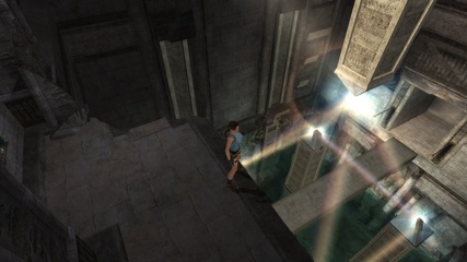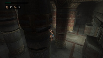 The Sanctuary of the Scion starts with a big set of stairs in both versions. In the original Lara can just climb up some blocks at the end to get outside, but Anniversary adds a puzzle with interconnected movable pillars, where she has to match the positions of the figures painted on their sides according to the wall murals. |