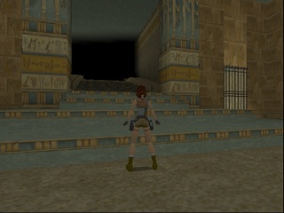 But even with the ankhs from both side chambers, Lara cannot just walk up to the door, but needs to climb the sphinx again to insert them at the sides of the head. The remake makes things much easier, as the spaces for the ankhs are just on both sides next to the door. |