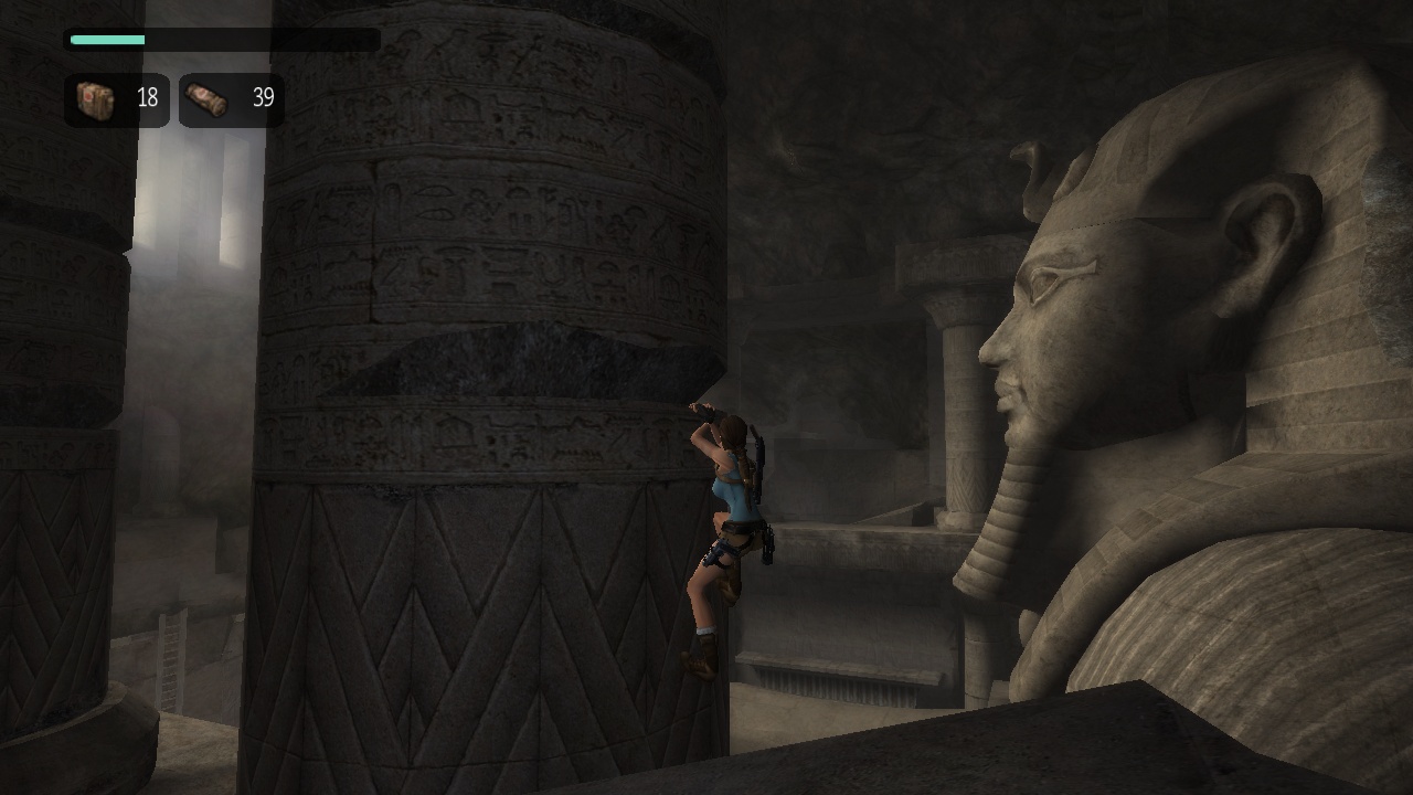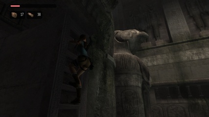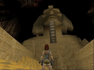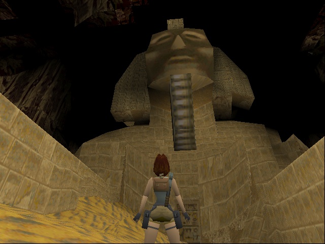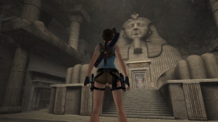 Either way Lara ends up at the back of the head of a large sphinx statue and has to climb down, only to find out that the door at the front is sealed. |