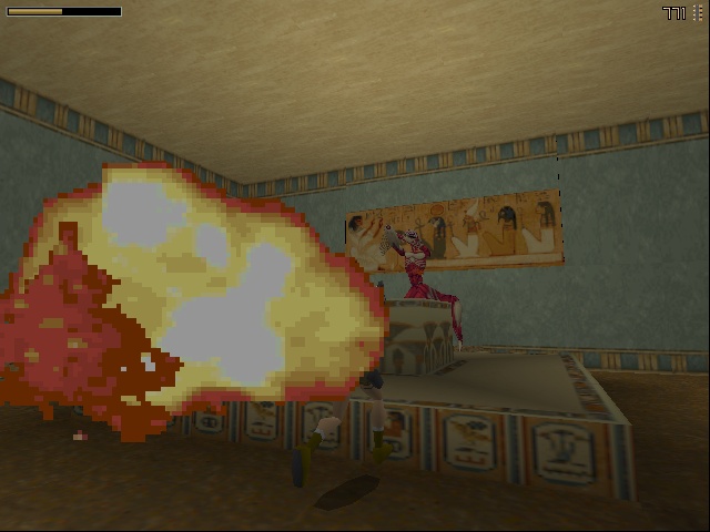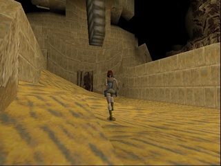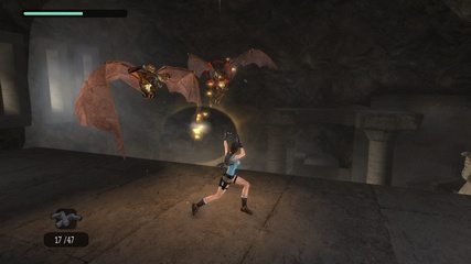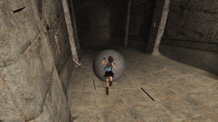 Anniversary lets Lara roll another stone ball down a long slope, where she can squash a few rats with it. But it's faster to just run down and shoot them on the way (or not), cause there's nothing actually to be done with the ball. |