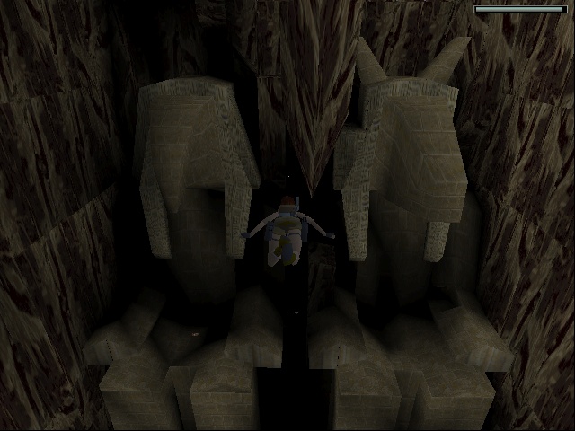 The added filler trap corridor here deserves special mention because it is one of the rare instances that forces Lara to make clever use of her rare crouching abilities by ducking under the crushing walls. |