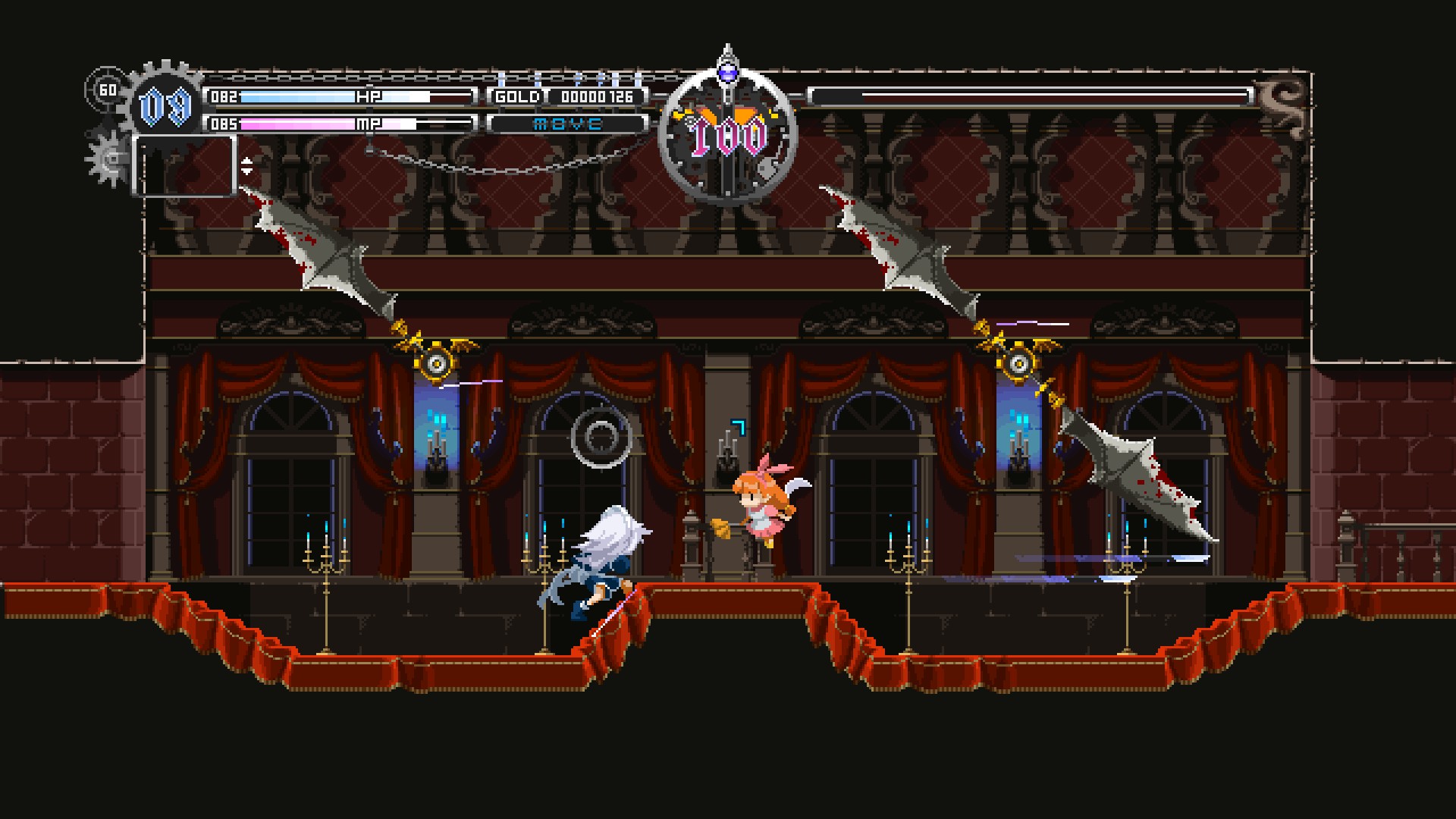 The time stop abilities are limited, but its meter also replenishes itself very quickly, so you’ll be able to use it regularly to freeze enemies, steal their MP, then kill them. This becomes much trickier in boss battles, where you’ll need to conserve your knife attacks and wait for them to use certain attacks and then drain them, or else you’ll find yourself too drain to fight effectively.